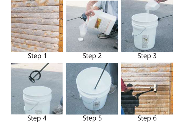 Wood ReNew contains a thickener that helps it adhere to log walls and siding. Simply mix the Wood ReNew concentrate with water, stir, and liberally apply it to the wood with a mop or brush.